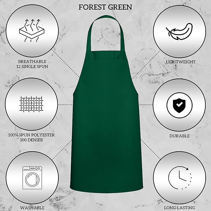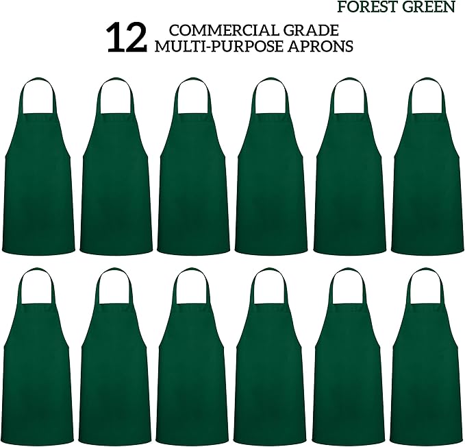 GREEN LIFESTYLE 12 Pack Professional Chef Apron – Grilling Aprons for Men, Waterproof Cooking Aprons for BBQ, Work or Restaurant Use, Kitchen Aprons for Women – Green, No Pockets