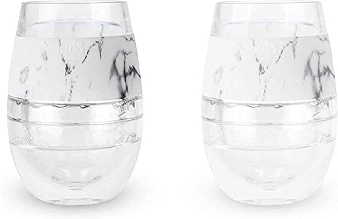 Host Wine Freeze Cup Set of 2 - Plastic Double Wall Insulated Wine Cooling Freezable Drink Glasses with Freezing Gel, Wine Glass Gift for Red and White Wine, 8.5 oz Marble