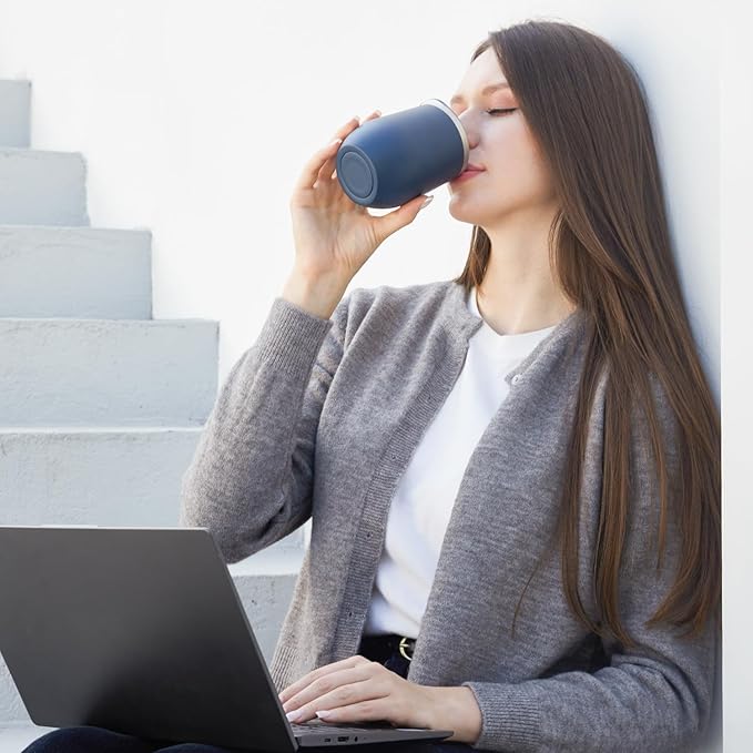 MEWAY Stemless 12oz Wine Tumbler Glasses with Lid -Insulated Double Wall Vacuum Stainless Steel Travel Tumbler with Straw,for Woman Under 10 dollars (Navy,1)