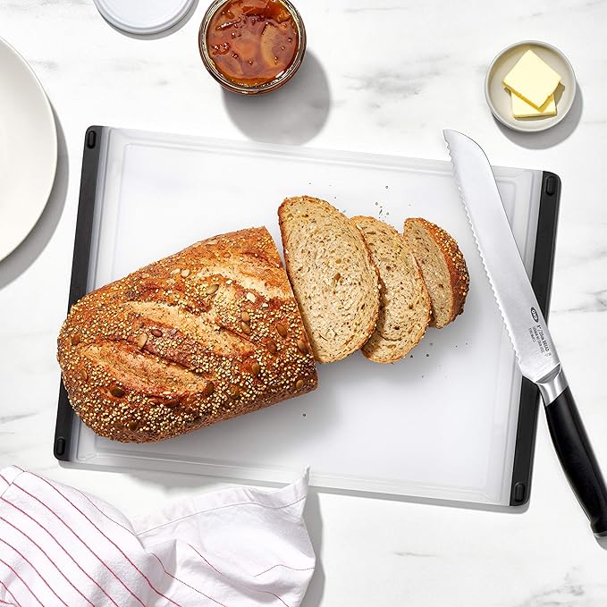 About This Large 10.39-in x 14.78-in Utility Cutting Board is ideal for big meals Double-sided, non-porous surfaces resist odors and... Read more