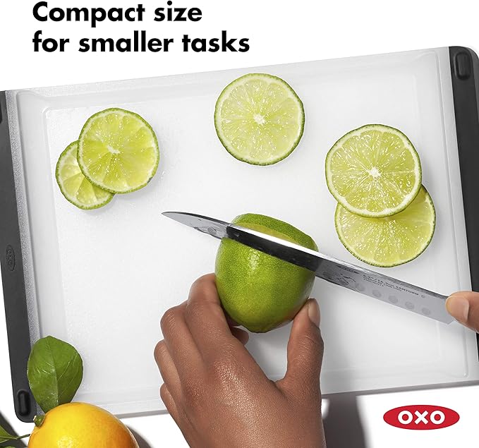 About This Compact 7.23-in x 10.75-in Prep Board is ideal for smaller slicing tasks Double-sided, non-porous surfaces resist odors and... Read more