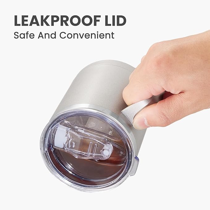 MEWAY 12oz Coffee Mug With Handle 4 Pack Bulk,Stainless Steel Insulated Travel Tumblers With Sliding Lid,Double Wall Vacuum Camping Cup for Hot & Cold Drinks Tea (Cold Grey,Set of 4)