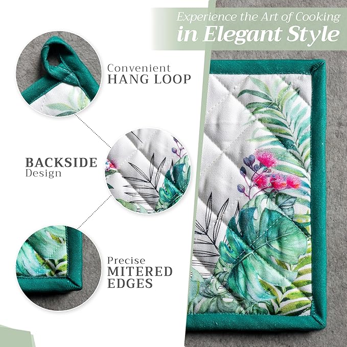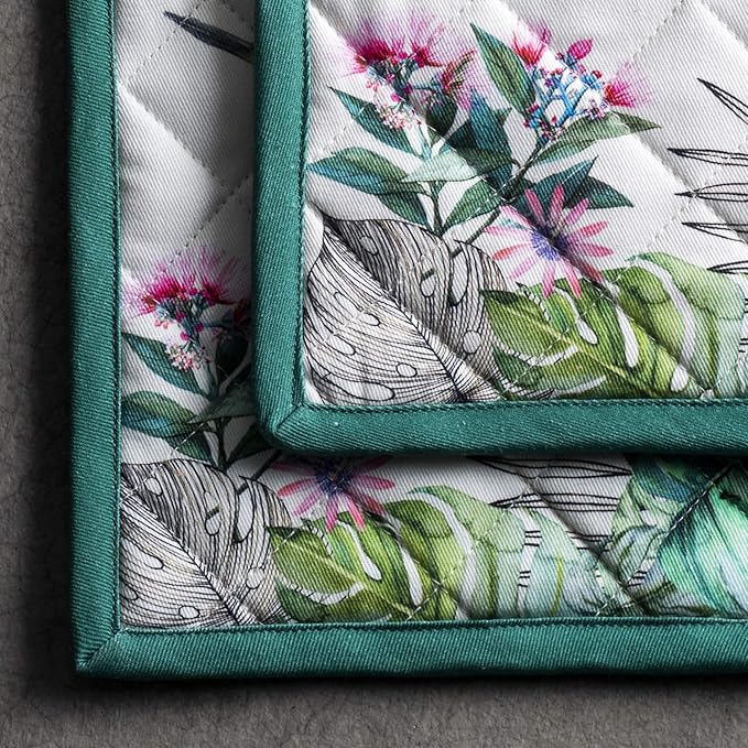 Maison d' Hermine Pot Holders Set 100% Cotton Heat Resistant Potholders 8" x 8" Hot Pads with Loop BBQ, Cooking, Baking, Grilling, Kitchen, Handling Hot Pans Spring/Summer (Pack of 2, Tropiques)