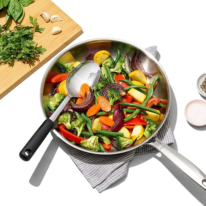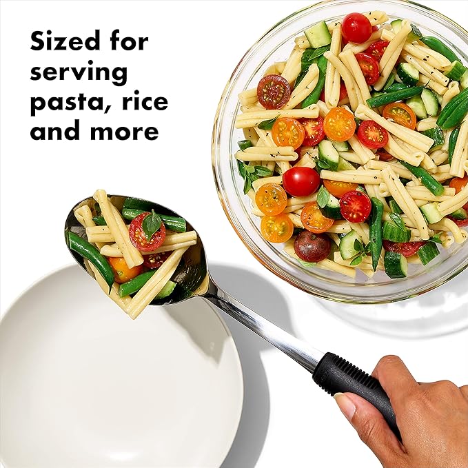 About This Sturdy stainless steel spoon stirs, scoops and serves Ideally sized for cooking large batches of soup, sauce, pasta... Read more