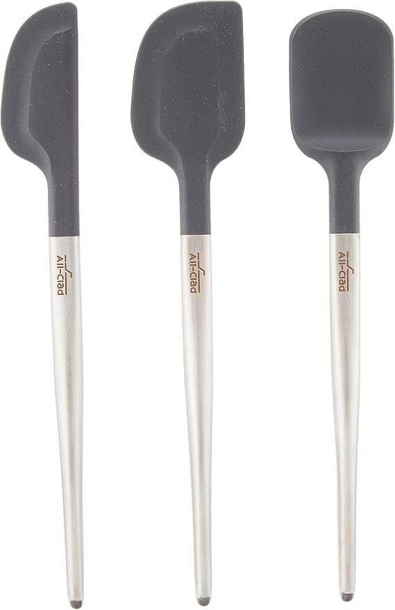 All-Clad Specialty Silicone Kitchen Gadgets 3 Piece Set, Spatulas Kitchen Tools, Kitchen Hacks Silver, Stainless Steel and Black