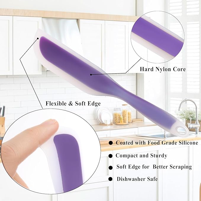 Nonstick Silicone Knife Shaped Flexible Kitchen Spatula Scraper Turner,Kitchen Cooking Utensils With Nylon Core (Purple(Set of 2))
