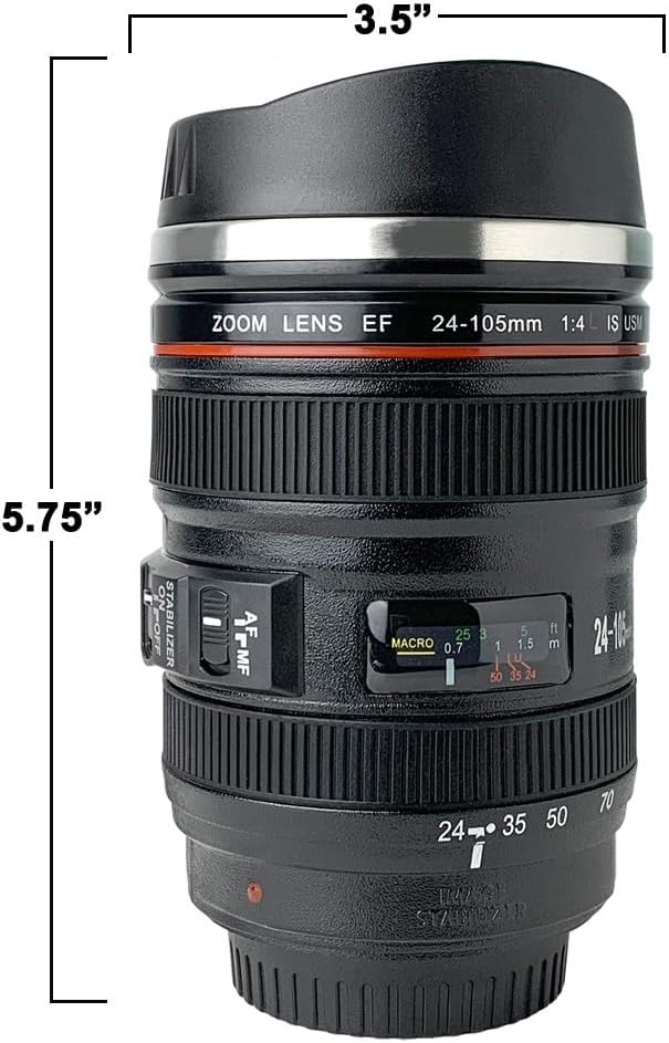 Camera Lens Coffee Mug with Slider Lid – Realistic DSLR Thermos Cup, Novelty Gift for Photographers, Coffee Lovers, Men & Women
