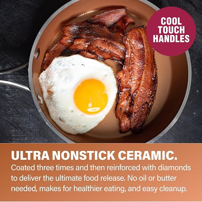 Gotham Steel Hammered 15 Pc Ceramic Cookware Set Nonstick, Deep Copper Pots and Pans Set Non Stick with Bakeware & Deep Fry Pan, Non Toxic PFOA PFOS Free, Induction Oven and Dishwasher Safe