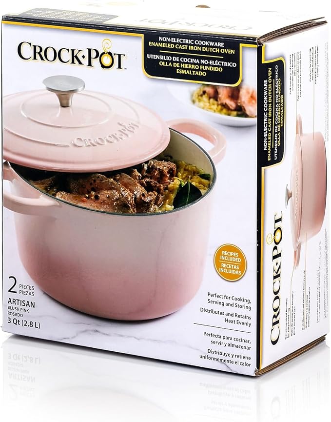 About This Crock Pot Artisan Round Enameled Cast Iron Dutch Oven, 3-Quart, Blush Pink w/Lid Hand wash recommended Perfect for... Read more