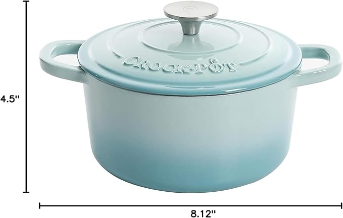 About This Crock Pot Artisan Round Enameled Cast Iron Dutch Oven, 3-Quart, Aqua Blue w/Lid Hand wash recommended Perfect for... Read more