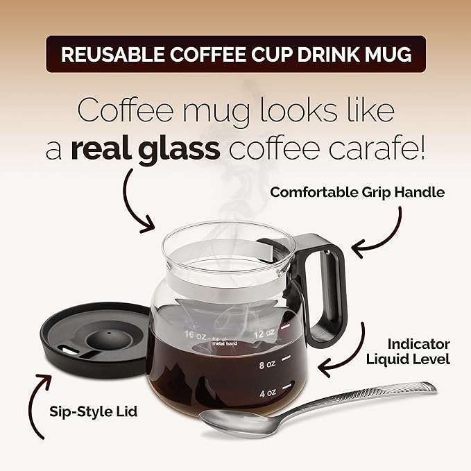 16 oz Coffee Pot Shaped Mug, Funny Drink Cup for Coffee Lovers. Cute Novelty Flat Bottom Carafe With Handle. Gifts For Co-workers, Friends, Birthdays - Unique Beverage Mugs for Men and Women