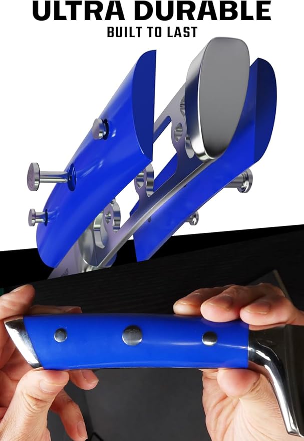 DALSTRONG Chef Knife - 8 inch Blade - Gladiator Series - Forged High Carbon German Steel - Razor Sharp Kitchen Knife - Professional Full Tang Knives - Blue Handle ABS - Sheath - NSF Certified