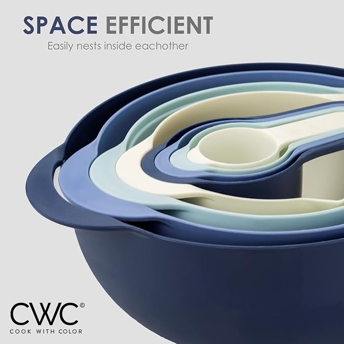 COOK WITH COLOR Nesting Bowls with Measuring Cups Colander and Sifter Set - Includes Mixing Bowls, Colander, Sifter and Measuring Cups, Blue Ombre, 8 Pc Bowl
