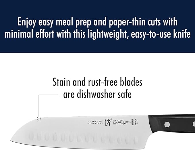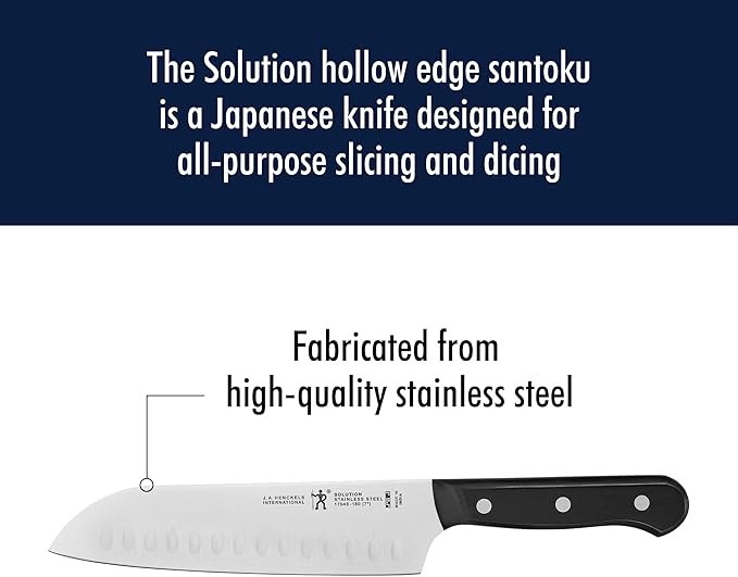 HENCKELS Solution Razor-Sharp Hollow Edge Santoku Knife 7 inch, German Engineered Informed by 100+ Years of Mastery, Black/Stainless Steel