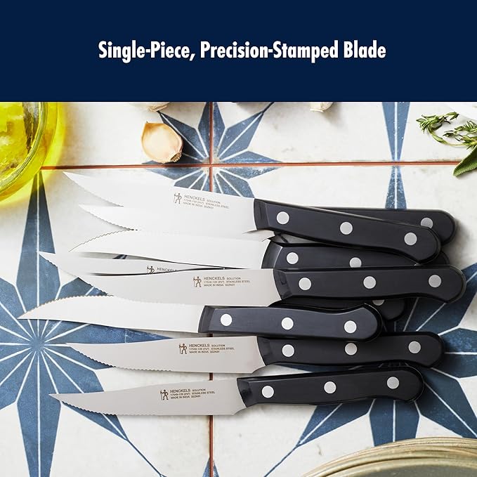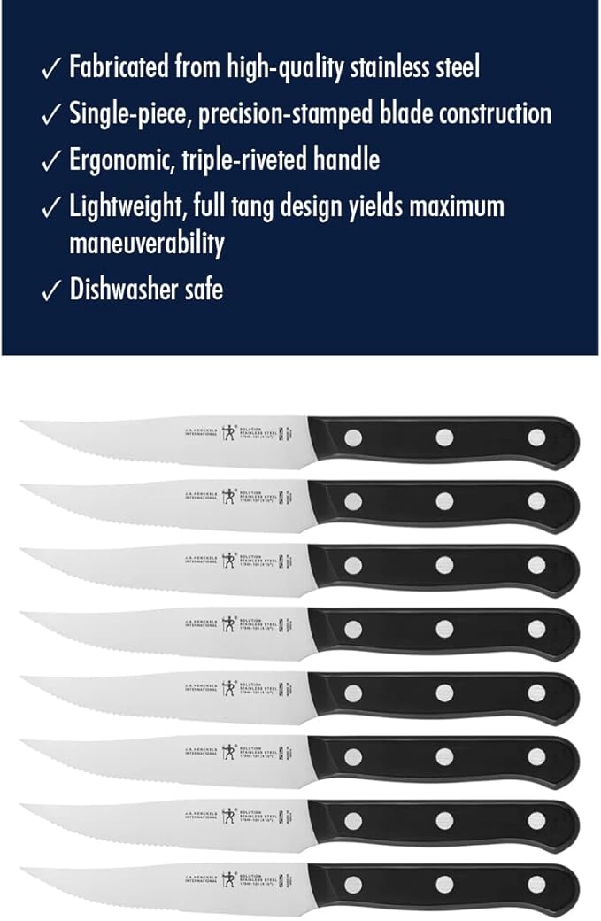 HENCKELS Solution Razor-Sharp Steak Knife Set of 8, German Engineered Informed by 100+ Years of Mastery,Black