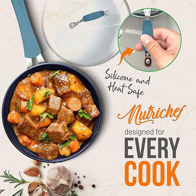 About This 11-PIECE SET: NutriChef offers a 11-piece nonstick cookware set which includes 1. 7qt saucepan pot w/ lid, 3.... Read more