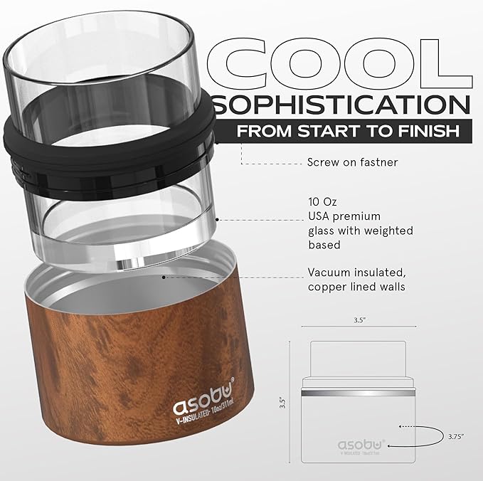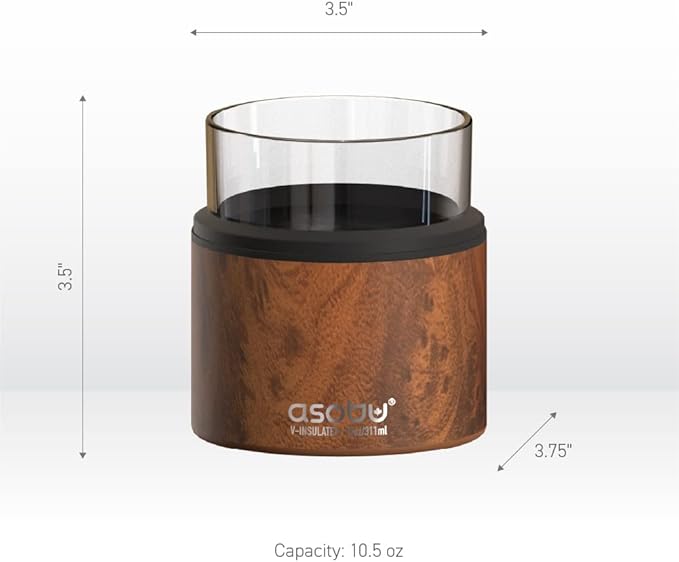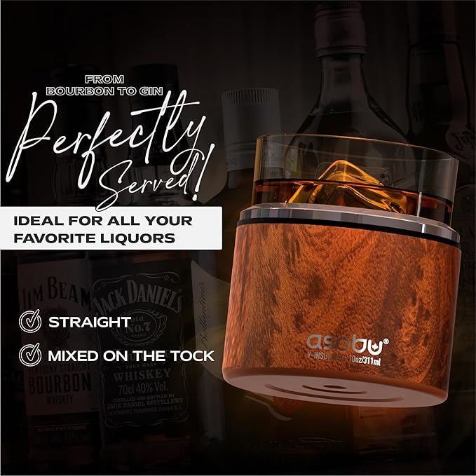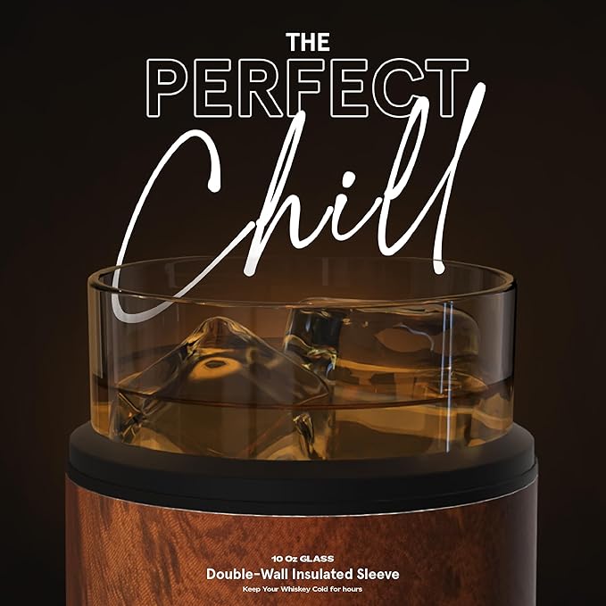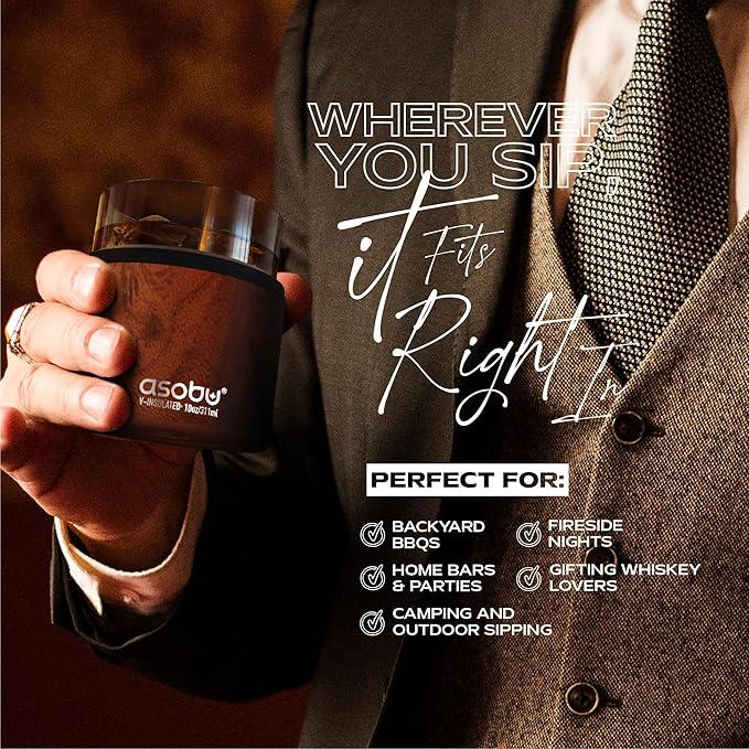 asobu Whiskey Sleeve Glass – Insulated Bourbon Tumbler with Premium Rocks Glass, BPA-Free, Double-Wall Stainless Steel, Keeps Drinks Cold Longer, 10.5oz