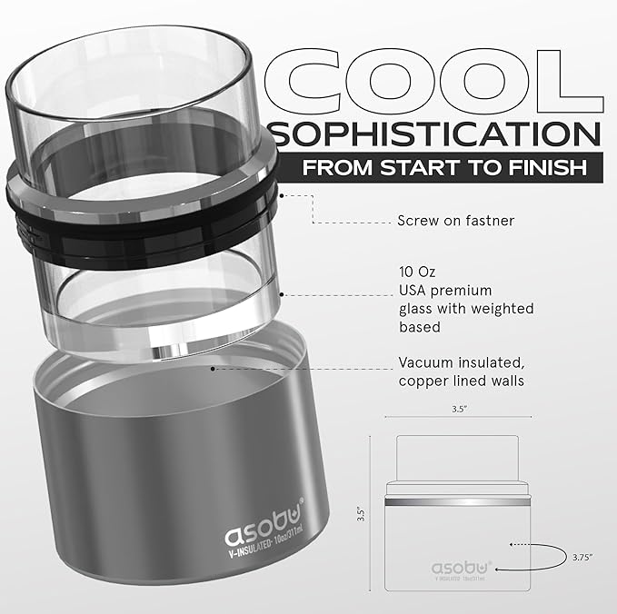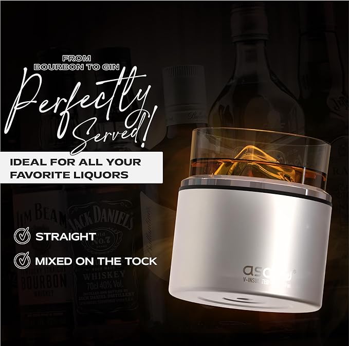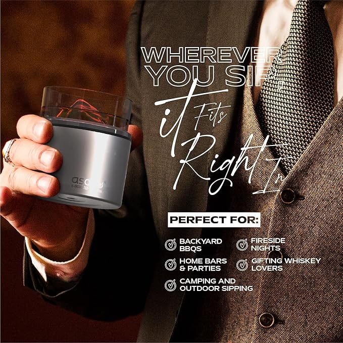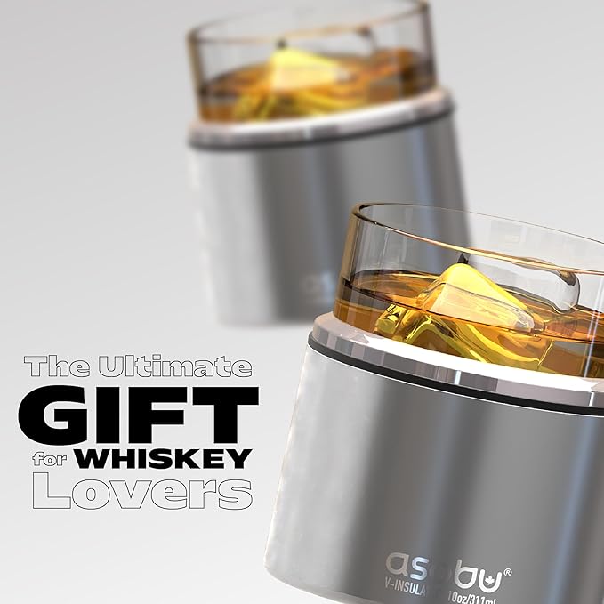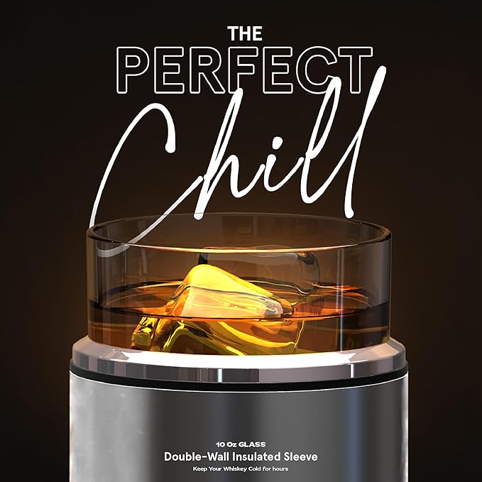asobu Whiskey Sleeve Glass – Insulated Bourbon Tumbler with Premium Rocks Glass, BPA-Free, Double-Wall Stainless Steel, Keeps Drinks Cold Longer, 10.5oz