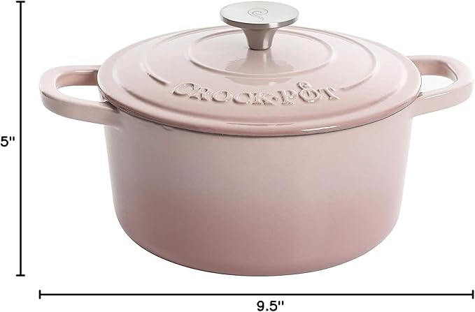 Crock-Pot Artisan Round Enameled Cast Iron Dutch Oven, 5-Quart, Blush Pink