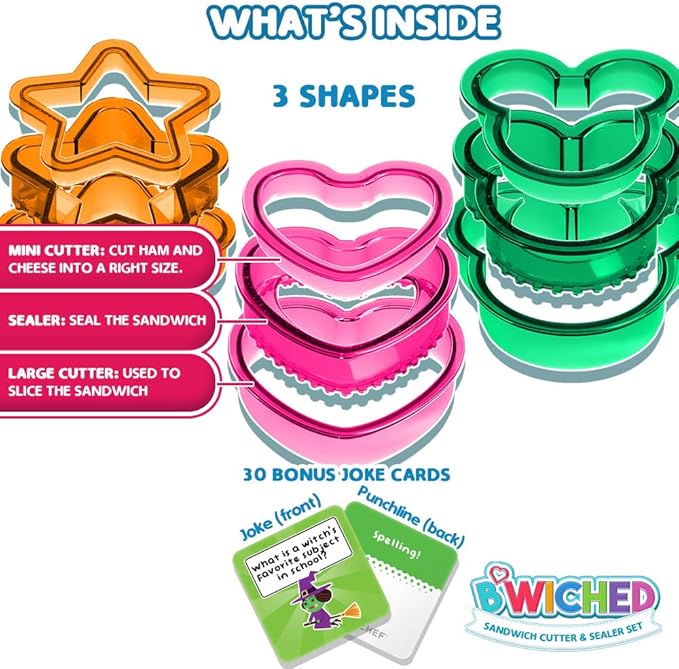 Sandwich Cutter and Sealer - Crustless Sandwich Maker - Great for Lunchbox and Bento Box - Boys and Girls Kids Lunch - Sandwich Cutters for Kids (Heart, Star, Mouse)