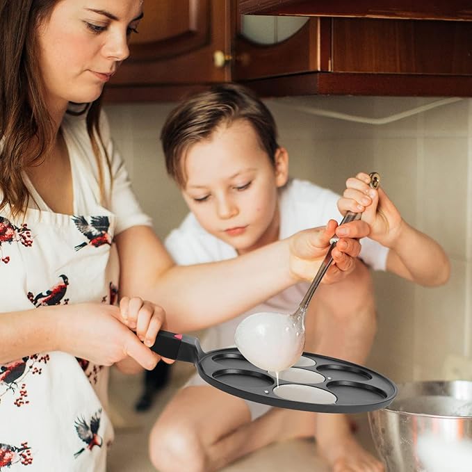 Pancake Pan Maker Nonstick Induction Compatible, 10.5 Inch Mini Non Stick Silver Dollar Grill Blini Griddle Crepe Pan,7 Molds Cake Egg Cooker Skillet for Kids Gifts
