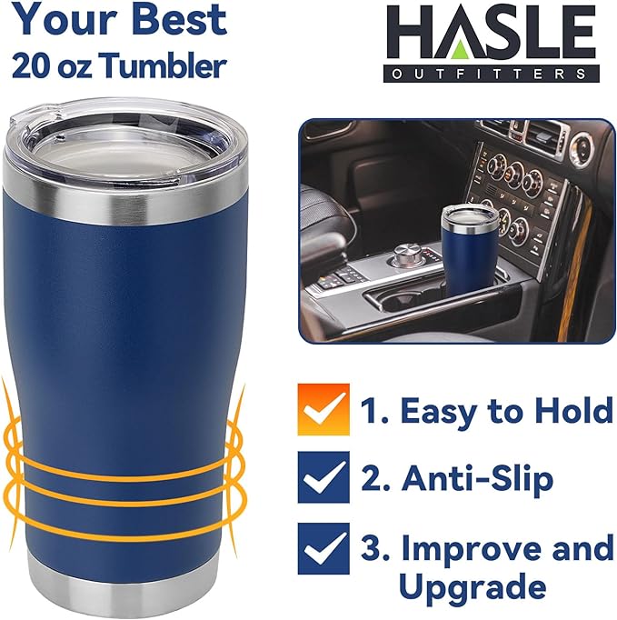 HASLE OUTFITTERS 20 oz Tumbler Bulk, Stainless Steel Tumblers with Lid, Vacuum Insulated Tumbler, Double Wall Powder Coated Cup, coffee mugs, Navy Blue, 6 Pack