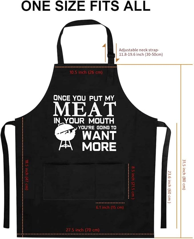 Funny Grilling Apron for Men, Adjustable Black BBQ Cooking Apron with Three Large Pockets, Chef Kitchen Apron for Barbecue and Outdoor Use, Gift for Dad, Husband, Boyfriend