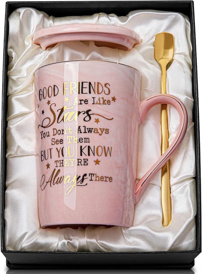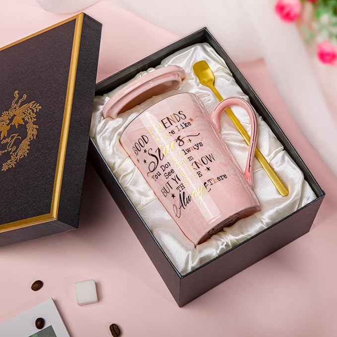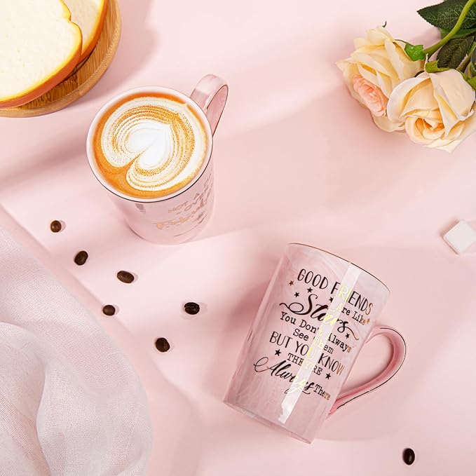 Best Friend Birthday Gifts for Women, Friendship Gifts for Women, Unique Birthday Gift Ideas for Her, Friends Female, Besties, BFF Ceramic Marble Coffee Mug Gift Box Printed Gold 14 oz