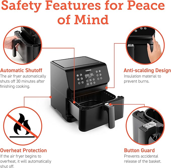 COSORI 12-in-1 Air Fryer 5.8QT, Toast, Bake, Nutrition Facts for 100+ In-App Recipes, AdaptIQ Tech Fast Cook, for Main & Side Dishes, Snacks, Leftovers, Detachable Square Basket, Dishwasher Safe