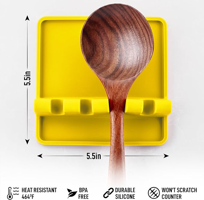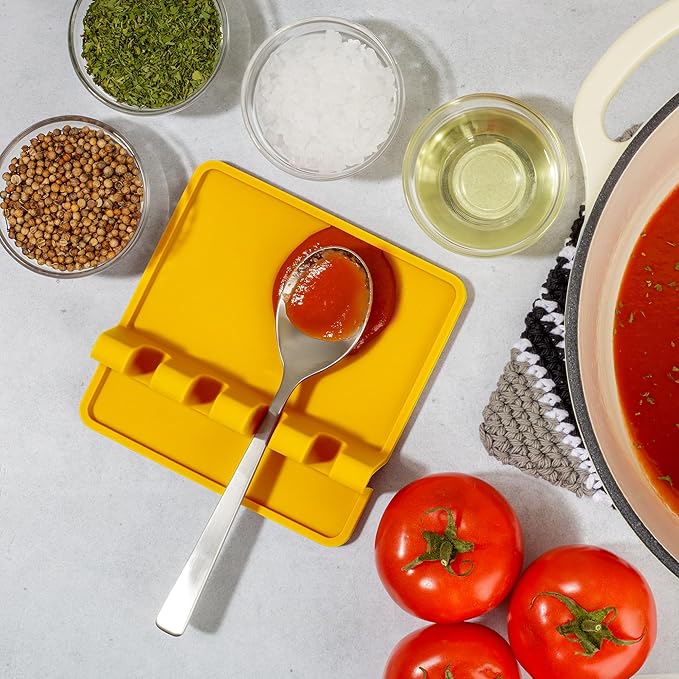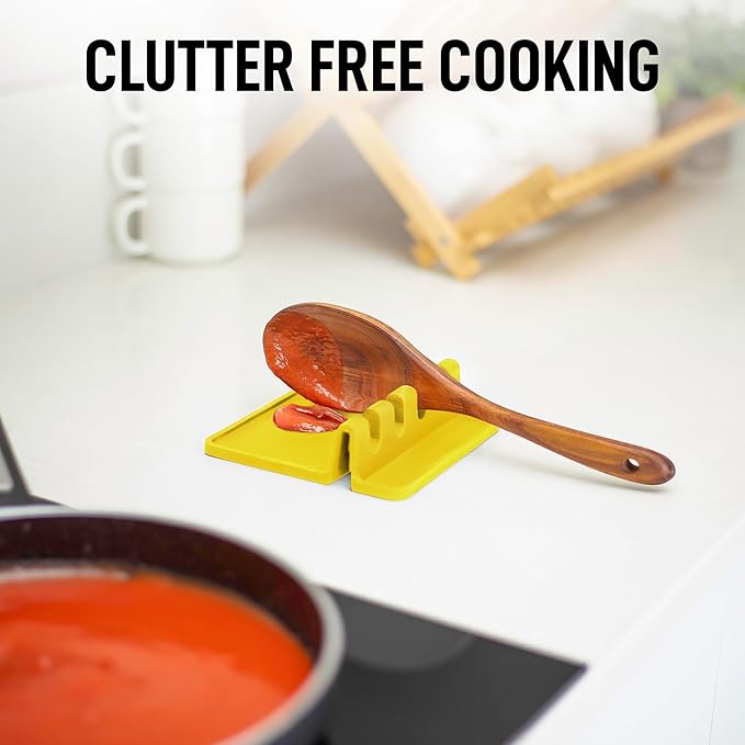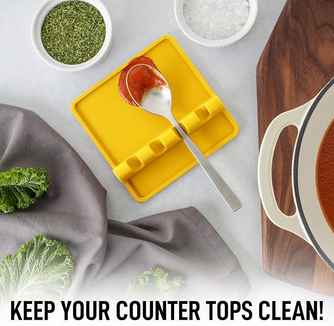 Zulay Kitchen Silicone Utensil Rest with Drip Pad for Multiple Utensils - BPA-Free, Heat-Resistant Spoon Rest & Spoon Holder for Stove Top - Kitchen Utensil Holder for Ladles & Tongs - Yellow