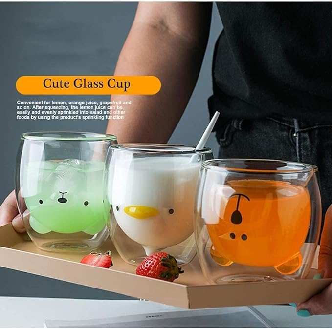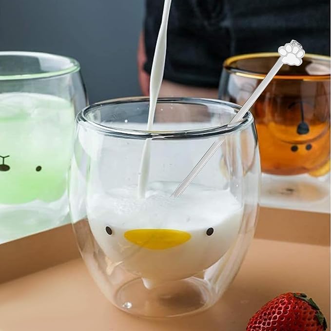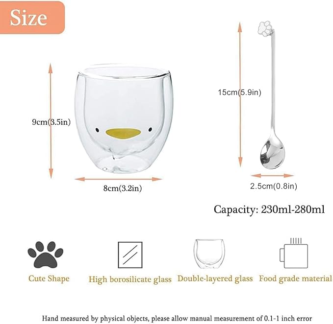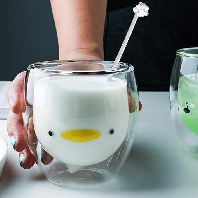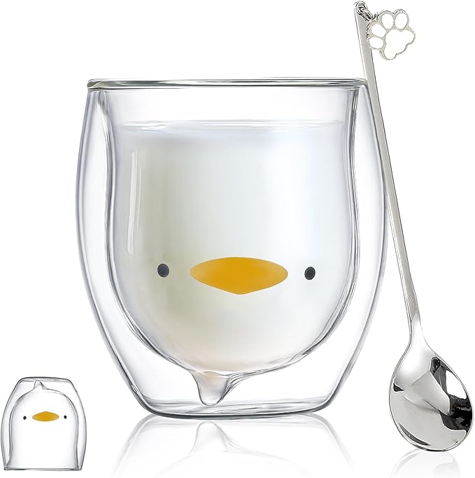 Duck Mug Cute Mugs Glass Double Wall Insulated Glass Espresso Cup, Coffee Cup, Tea Cup, Milk Cup,Kawaii Gift for Office and Personal Birthday Christmas (Duck)