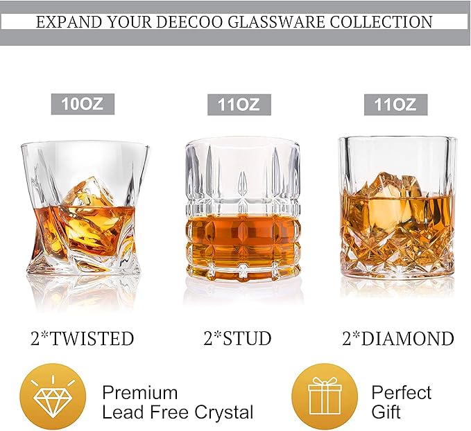 DeeCoo Premium 10, 11 OZ Scotch Glasses - Old Fashioned Whiskey Glasses/Style Glassware for Bourbon/Rum/Bar Tumbler Set of 6