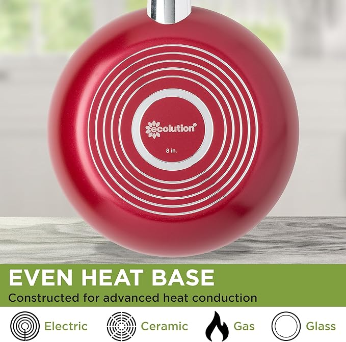 Ecolution Easy Clean Ceramic Nonstick Cookware Set, Dishwasher Safe Kitchen Pots and Pans Set, Comfort Grip Handle, Even Heating, Ultimate Food Release, 26-Piece, Red