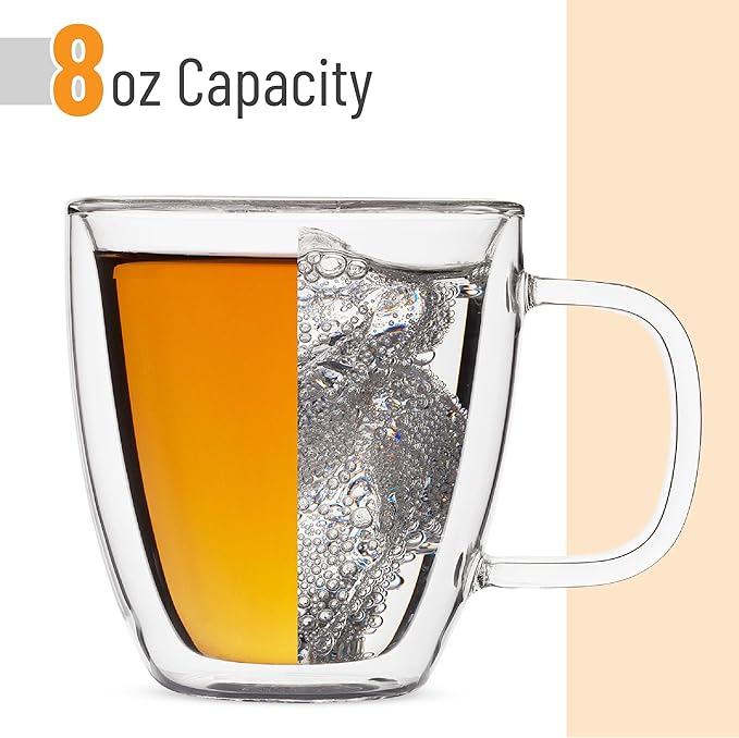 BTaT- Double Wall Glass Cups, Set of 4 (8 oz, 240 ml), Tea Cups, Glass Coffee Mugs, Cappuccino Cups, Latte Cups, Latte Mug, Clear Coffee Cup, Espresso Glass, Glass Tea Cups, Glass Coffee Cups