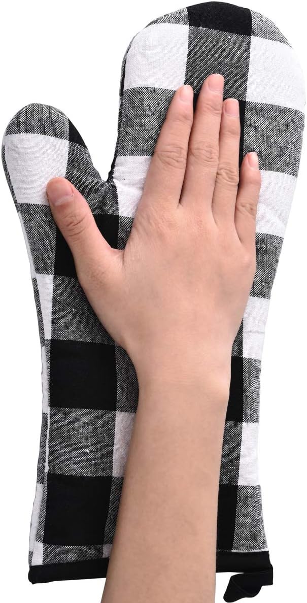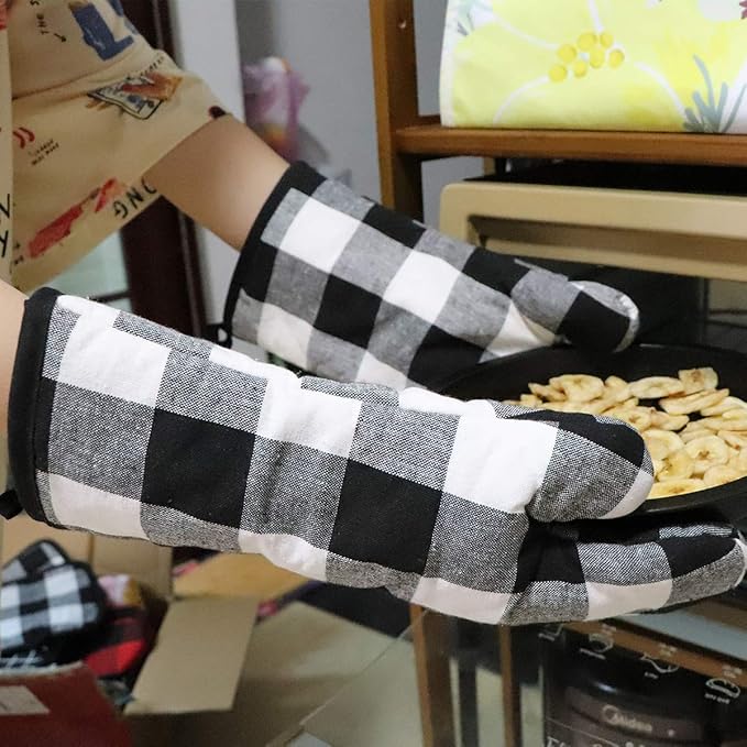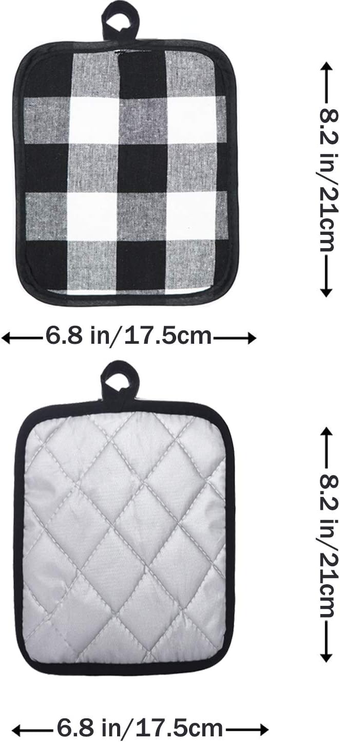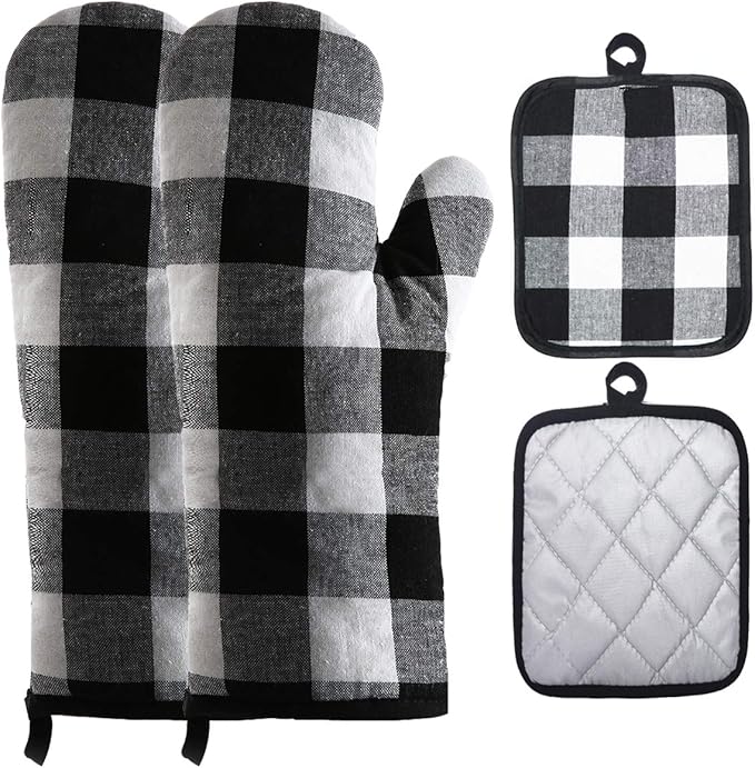 Oven Mitts and Potholders BBQ Gloves-Oven Mitts and Pot Holders with Recycled Infill Silicone Non-Slip Cooking Gloves for Cooking Baking Grilling (4-Piece Set) (Black/White)