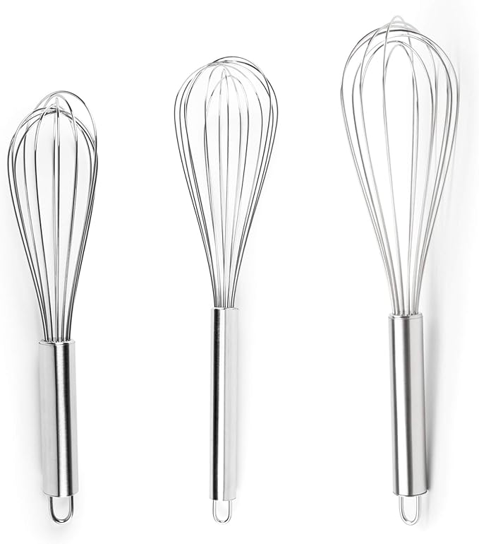 About This BALLOON WHISK SET OF 3 includes 8-inch, 10-inch and 12-inch lengths, the perfect wire wisk utensil set for... Read more