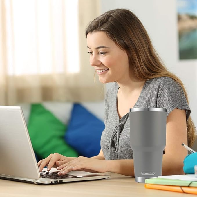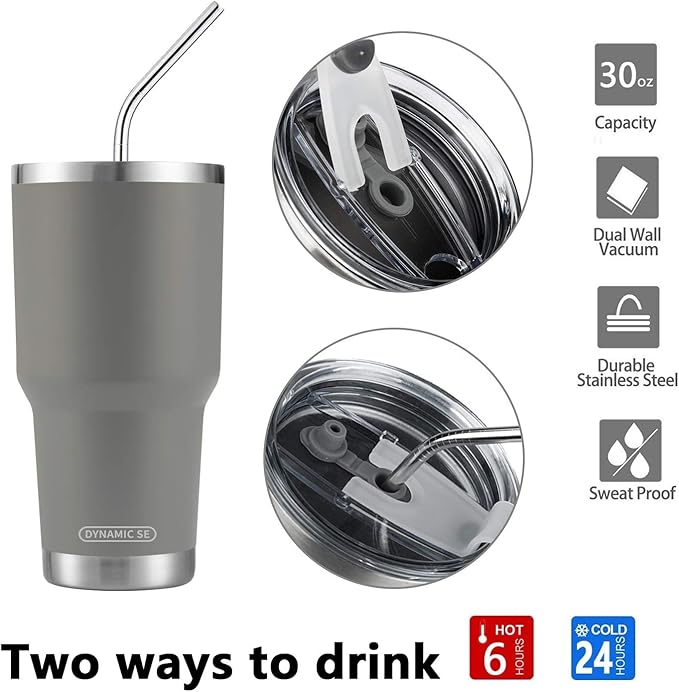 D·S 30oz Grey Tumbler Stainless Steel Insulated Travel Mug with Straw Lid Cleaning Brush (30oz Grey)