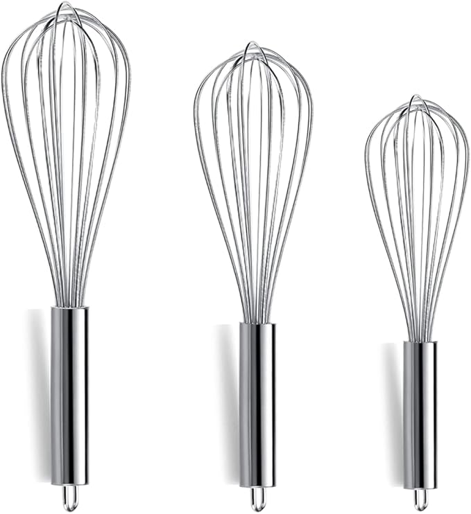 Berglander Whisk Set Pack of 3, Stainless Steel Whisks for Cooking 8",10",12", Wire Ballon Wisk (Silver)