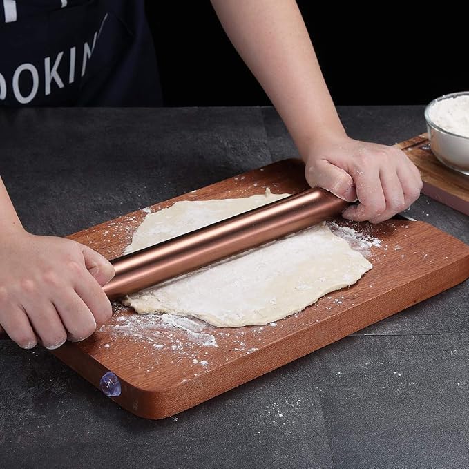 About This Berglander Rose Gold Rolling Pin, 17 Inches Stainless Steel Matte Finish With Rose Gold Titanium Plating Copper Rolling... Read more