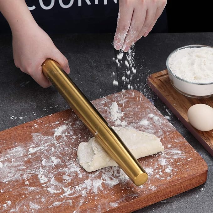 About This Berglander Gold Rolling Pin, 17 Inches Stainless Steel Matte Finish With Gold Titanium Plating Rolling Pin For Baking,... Read more