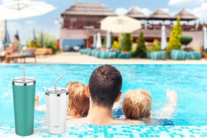 THILY Tumbler Vacuum Insulated Travel Mug 26 oz Coffee Cup with Lids and Straws, Reusable, Splash-Proof, Powder Coated, Keep Ice Drinks Cold, Teal