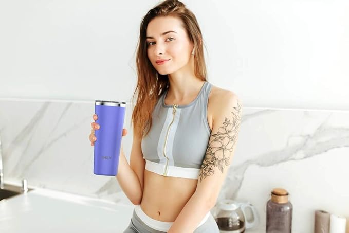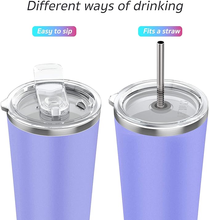 THILY Tumbler Stainless Steel Travel Mug 26 oz Triple-Insulated Coffee Cup with 2 Lids and Straws, Reusable, Powder Coated, Splash-Proof, Keep Ice Drinks Cold, Lavender