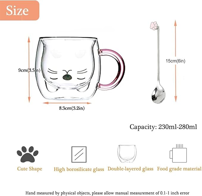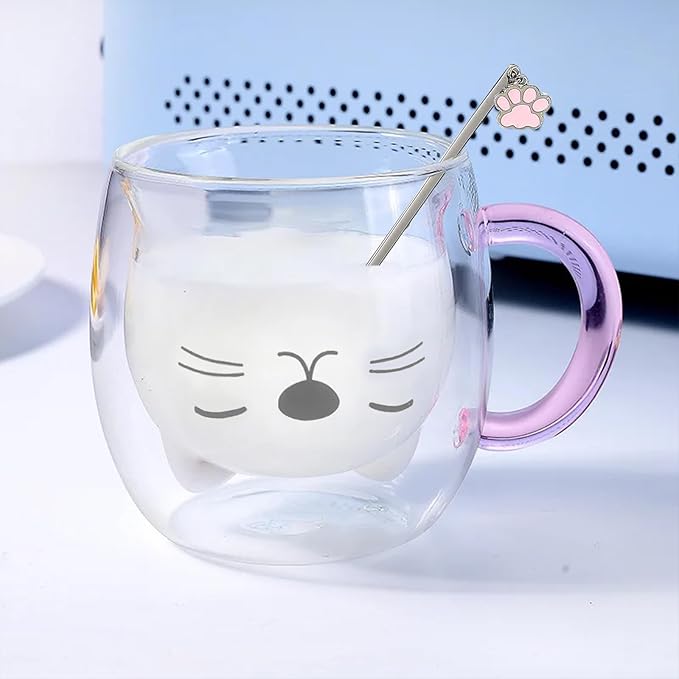 Purple Cat Mug Cute Mugs Glass Double Wall Insulated Glass Espresso Cup, Kawaii Cup, Coffee Cup, Tea Cup, Milk Cup, Best gift for Office and Personal Birthday Christmas (Purple Cat)