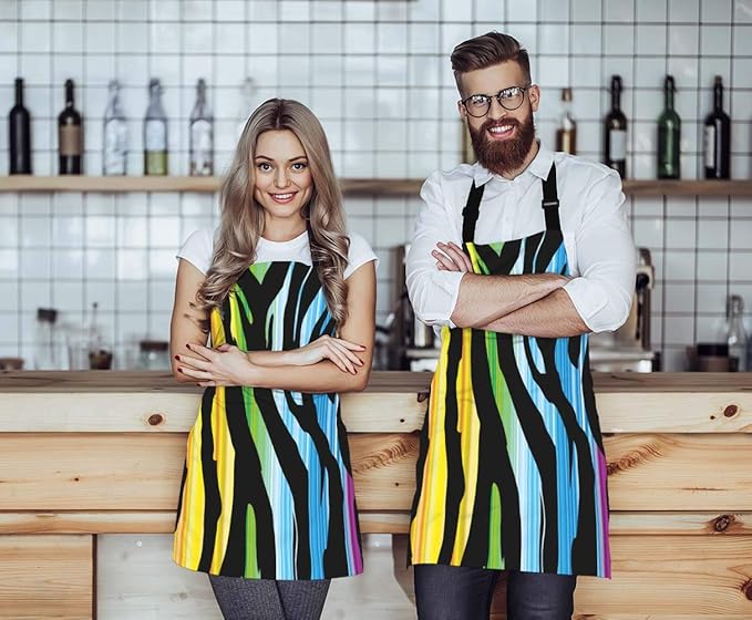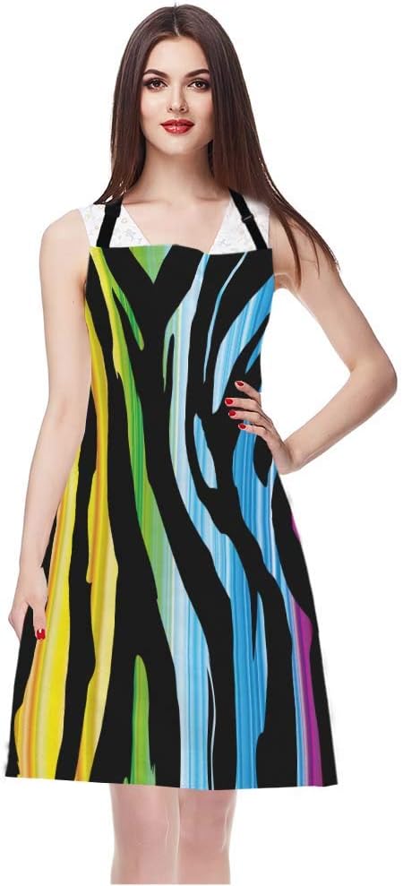 EKOBLA Zebra Aprons Colorful Animal Pattern Abstract Art Curve Drawing Stripes Fashion Waterproof Resistant Chef Cooking Kitchen BBQ Adjustable Aprons for Women Men 27x31 Inch