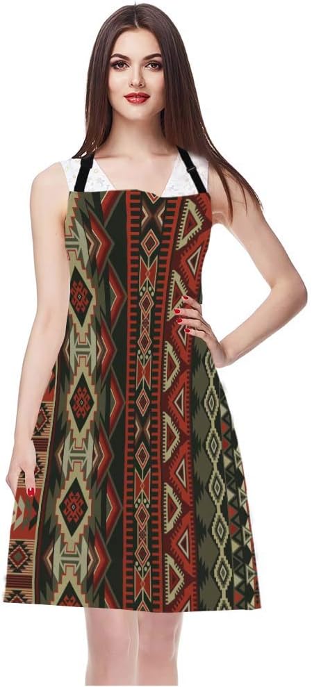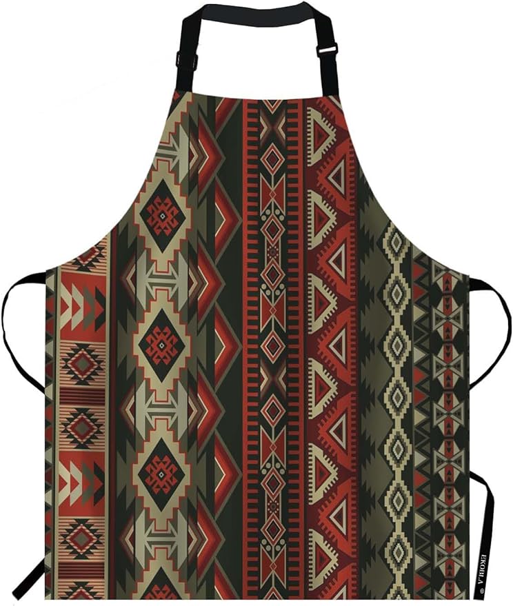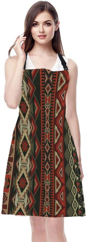 EKOBLA Aztec Print Aprons American Style Decorative Geometric Ornament Tribal Design Waterproof Resistant Chef Cooking Kitchen BBQ Adjustable Aprons for Women Men 27x31 Inch