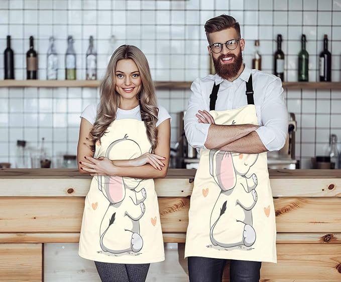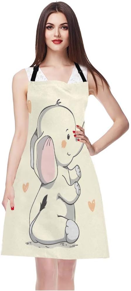 EKOBLA Elephant Aprons Kind Pretty Smiling Elephant Butterfly Trunk Cartoon Hand Drawn Waterproof Resistant Chef Cooking Kitchen BBQ Adjustable Aprons for Women Men 27x31 Inch