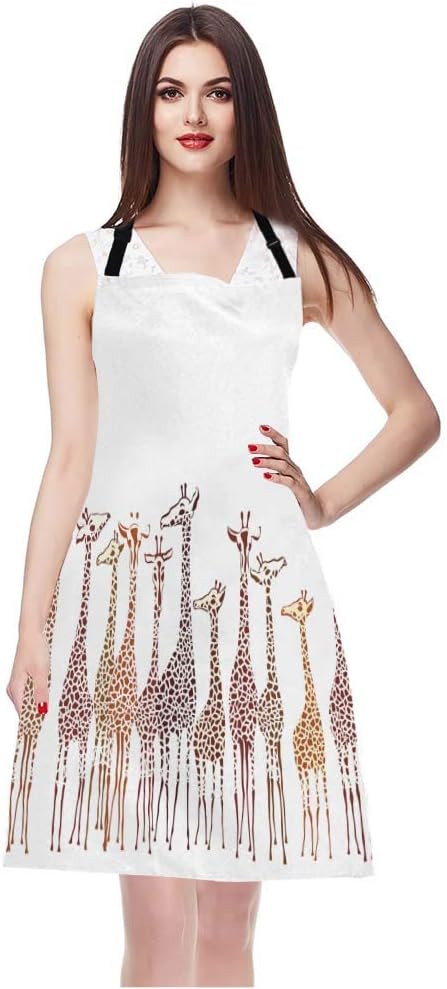 EKOBLA Giraffes Aprons Animal Cute Wild Cartoon Africa Safari Tall Group Crowded Spot Zoo Waterproof Resistant Chef Cooking Kitchen BBQ Adjustable Aprons for Women Men 27x31 Inch