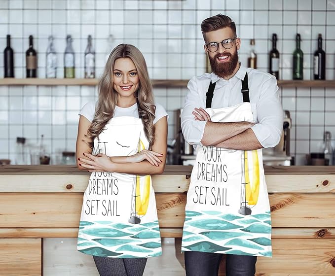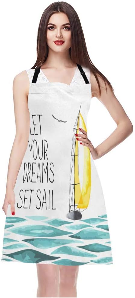 EKOBLA Let Your Dreams Set Sail Aprons Sailboat Seagull Sea Adventure Trip Wave Waterproof Resistant Chef Cooking Kitchen BBQ Adjustable Aprons for Women Men 27x31 Inch