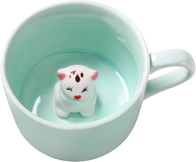 Surprise 3D Coffee Mug Animal Inside 8 oz with Kitten,Cute Cartoon Handmade Ceramics Cup,Christmas Birthday Surprise for Friends Family or Kids (Kitten)