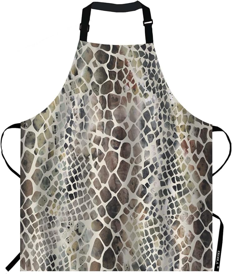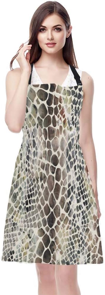 EKOBLA Snake Pattern Aprons Animal Skin Artwork Watercolor Painting Art Crocodile Waterproof Resistant Chef Cooking Kitchen BBQ Adjustable Aprons for Women Men 27x31 Inch